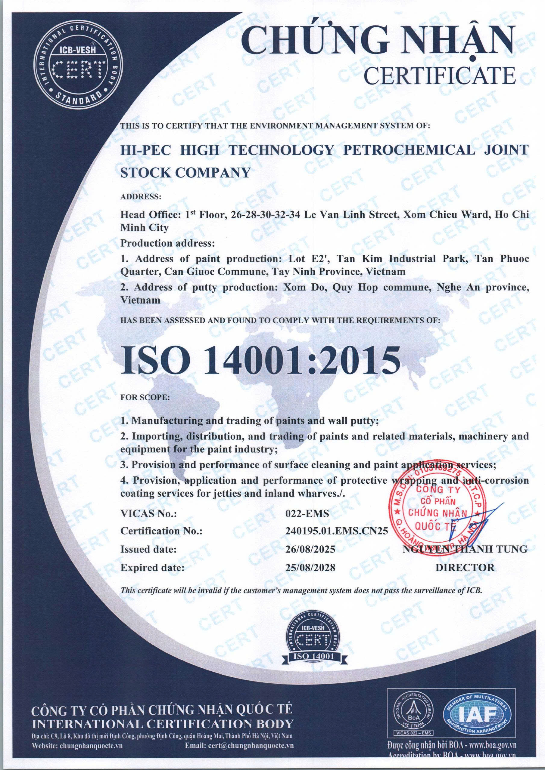 By bringing into play high technologies as it’s main forte itself, empowered by a well-trained, highly qualified team of scientific staffs who are vastly experienced in managerial works in many large companies, Hi-Pec has made it’s own Different and Better way. That is: Research, Acquire and Combine the key advantages of paints from different brands from various countries, create new paints and technologies that are best suited to the tropical conditions of Vietnam – the typical challenging requirements which puzzle individual brands.